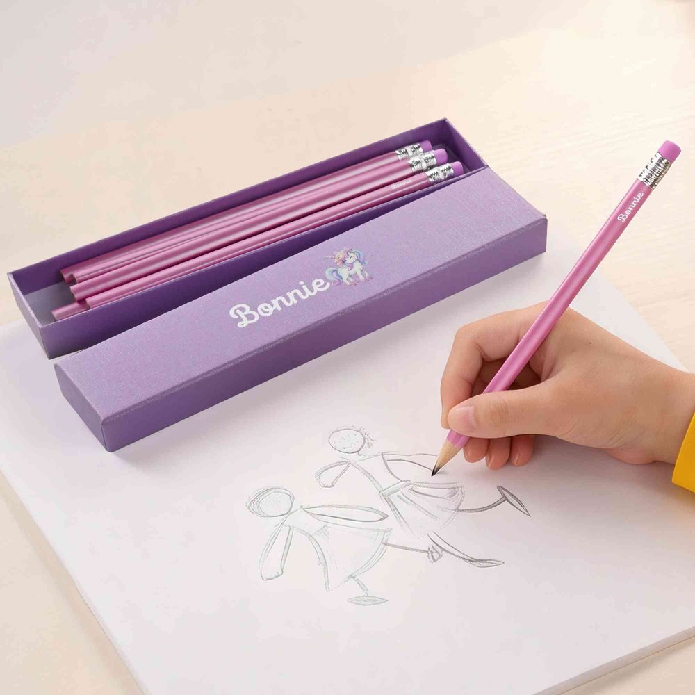 Each pencil case and pencil is customizable with your child’s name, elegantly printed to blend seamlessly with the delightful designs. This personal touch ensures they feel special and unique, helping them take pride in their belongings.