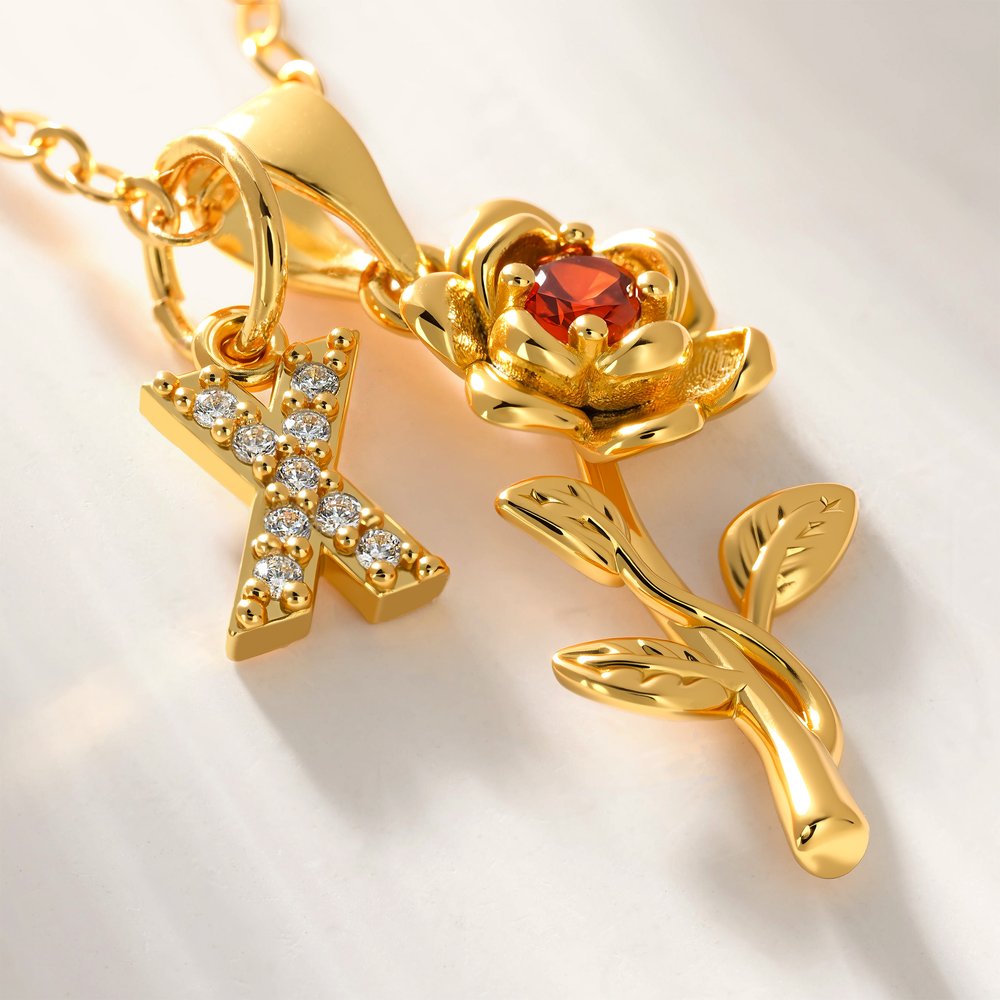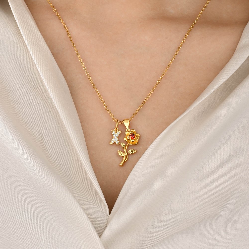 Crafted from premium brass or sterling silver with a refined polished finish, this necklace maintains a warm, glossy luster and resists tarnishing over time. The vivid, textured rose details stay crisp, and the securely set stones in the initial charm won’t easily fall out. The slender yet sturdy chain is lightweight and skin-friendly, ensuring all-day comfort and long-lasting shine for years to come.