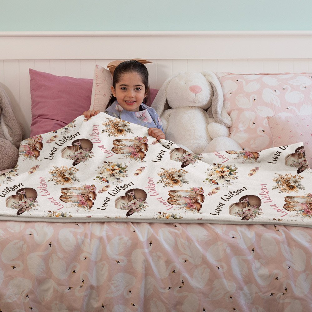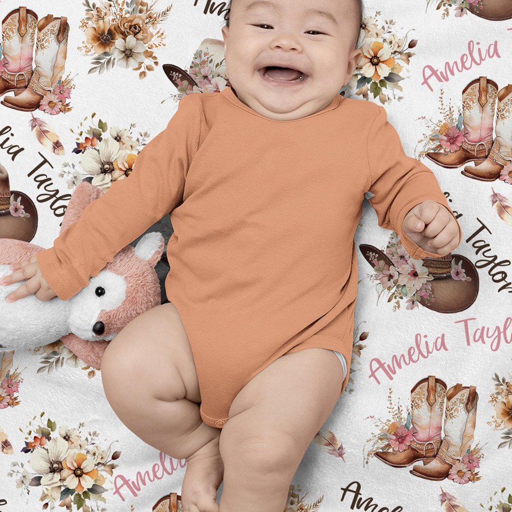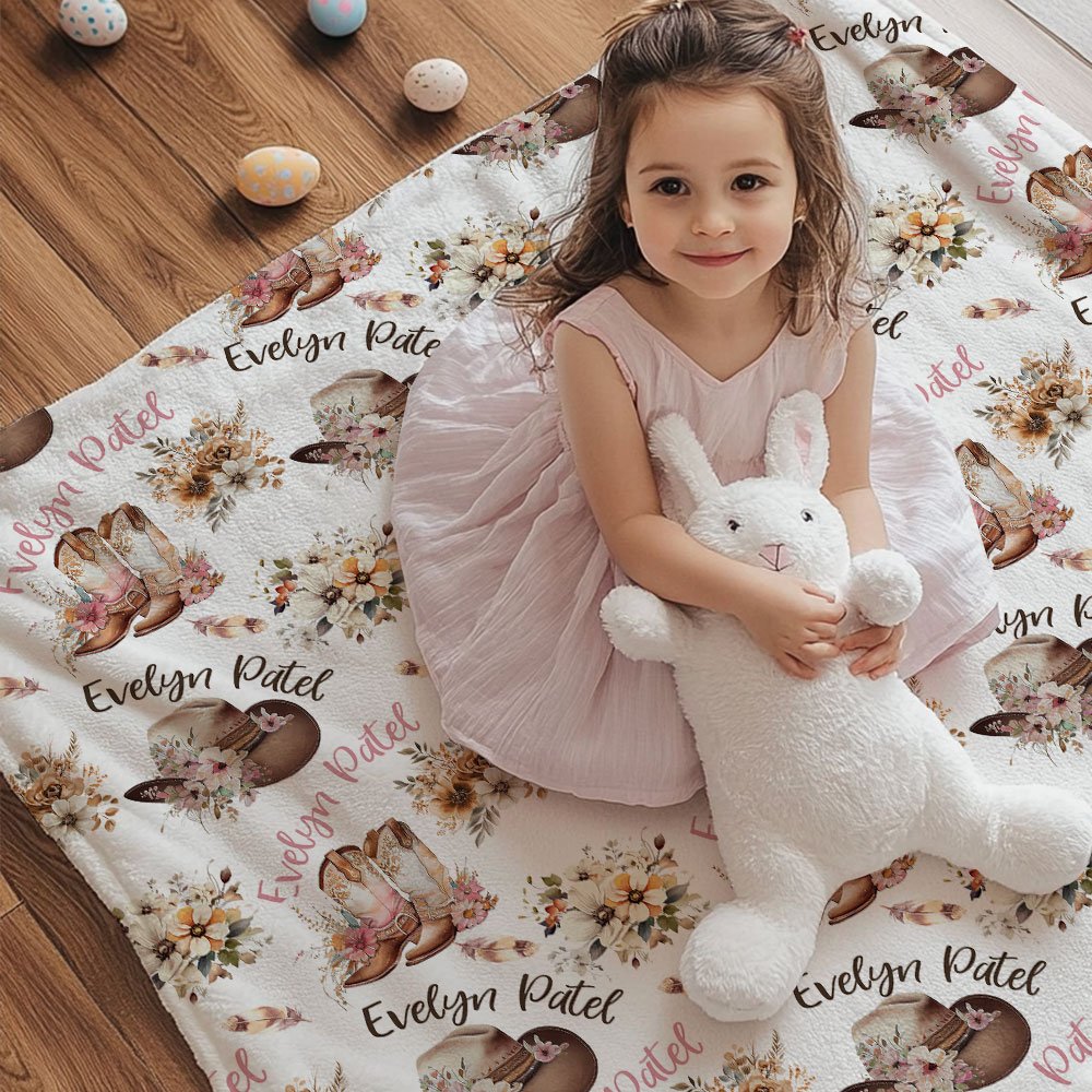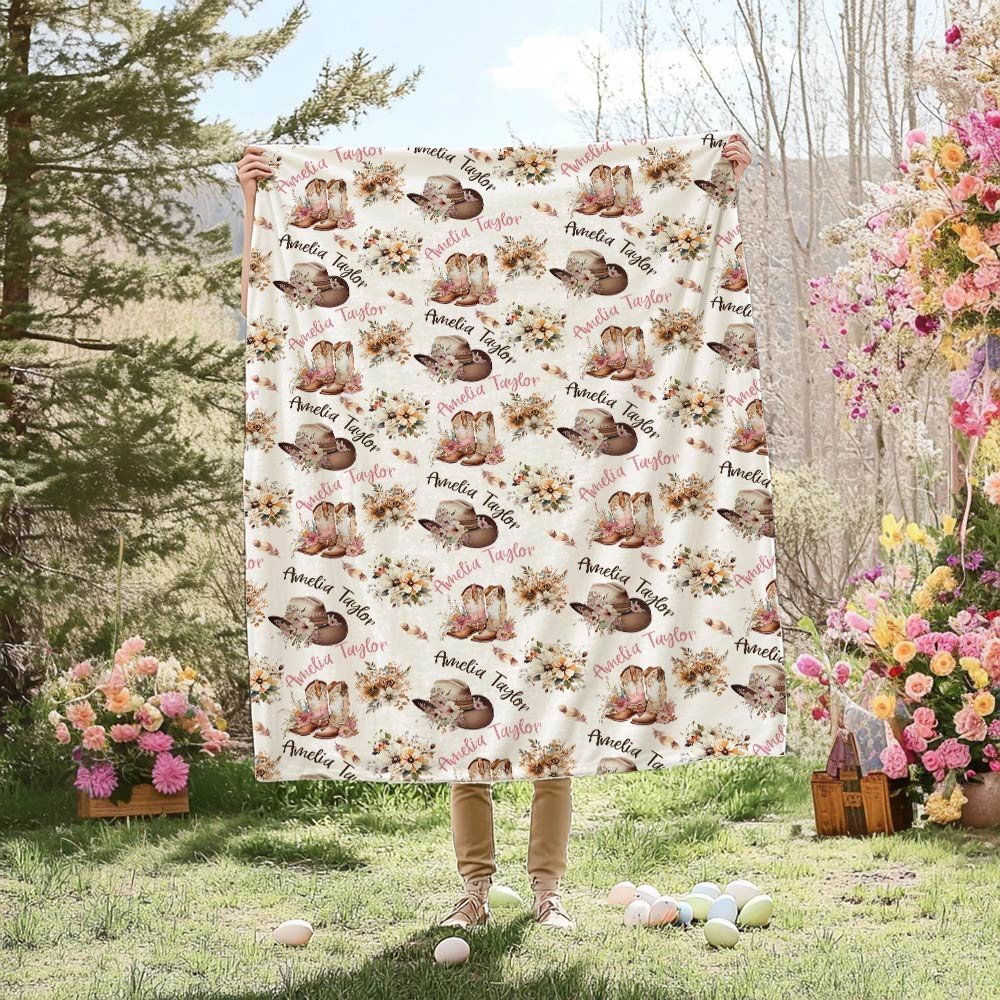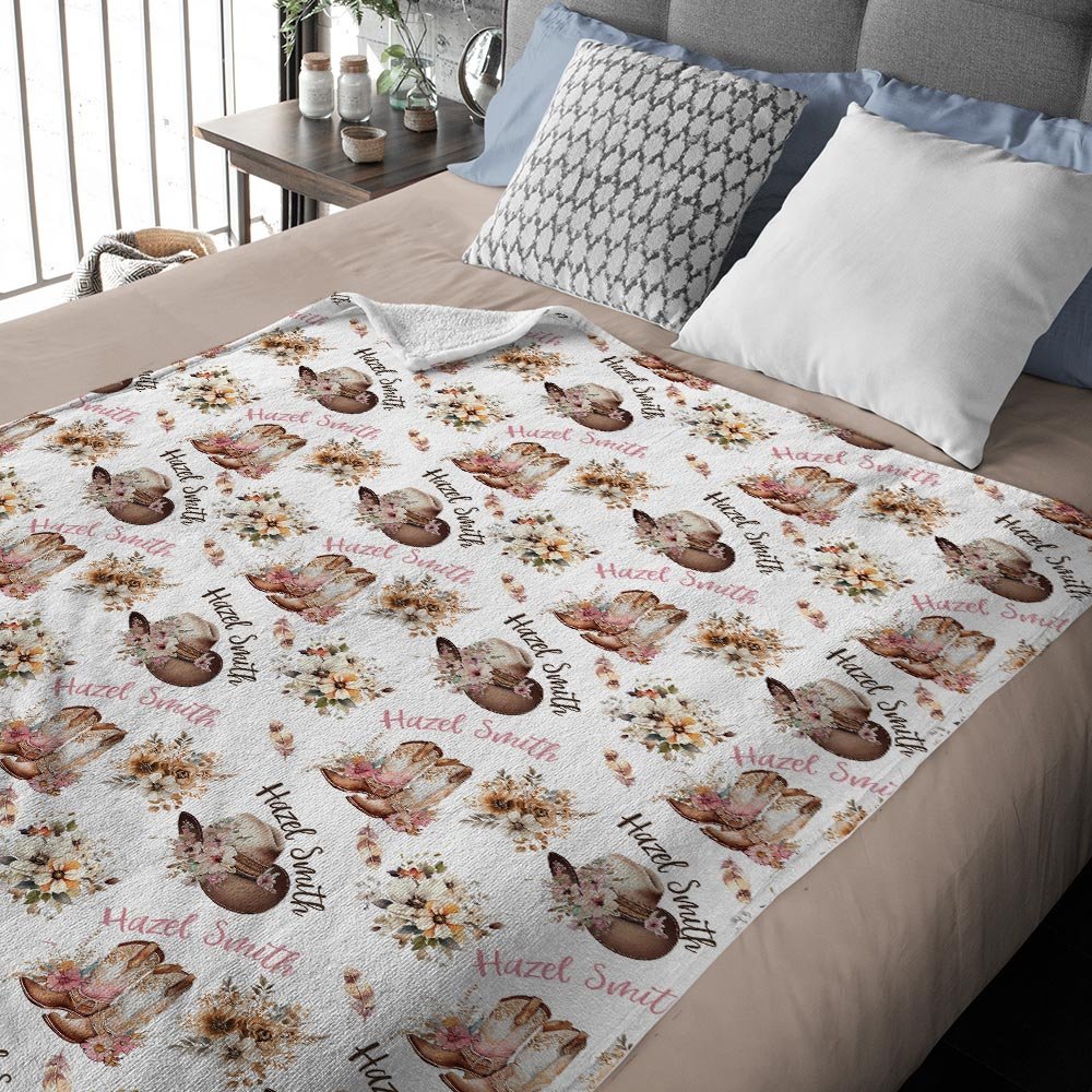 Personalized Floral Cowgirl Boots Hat Design Name Cloud Soft Throw Blanket Home Decor Birthday Gift for Girls
