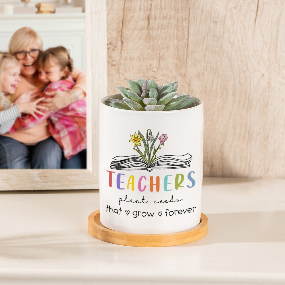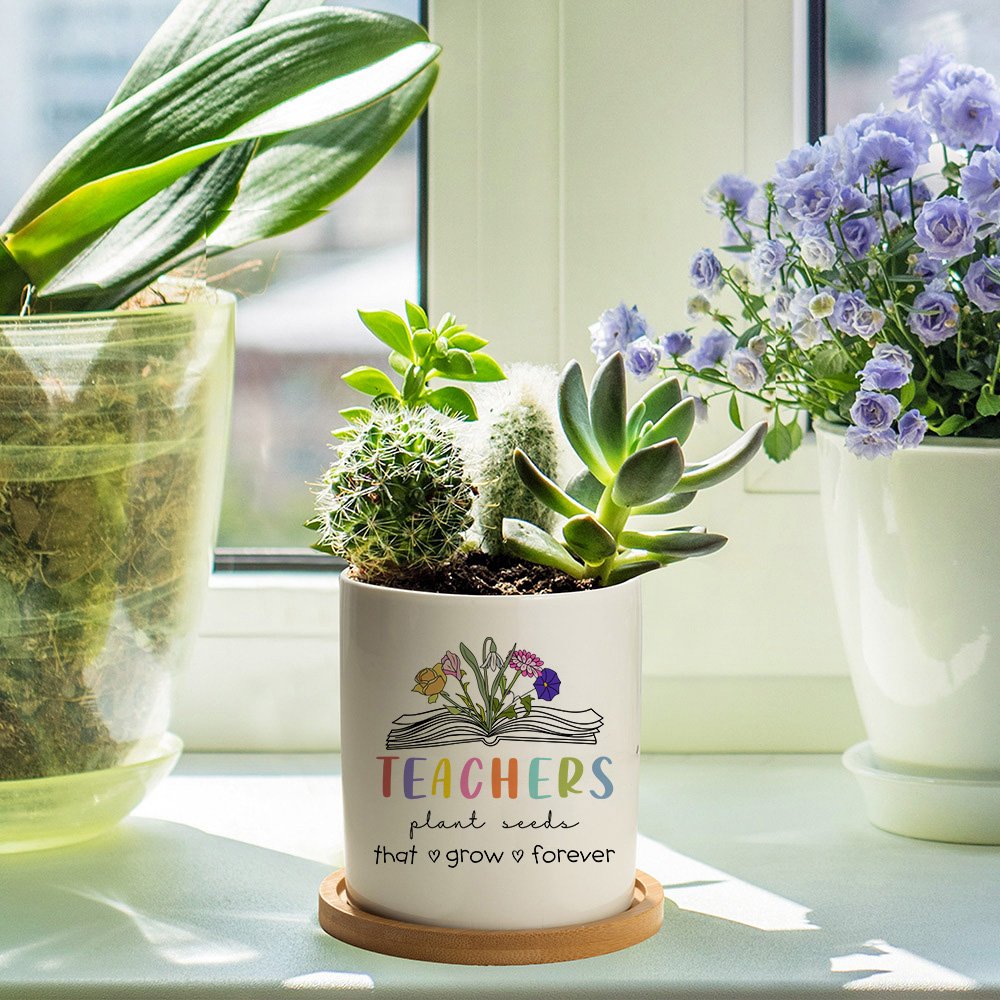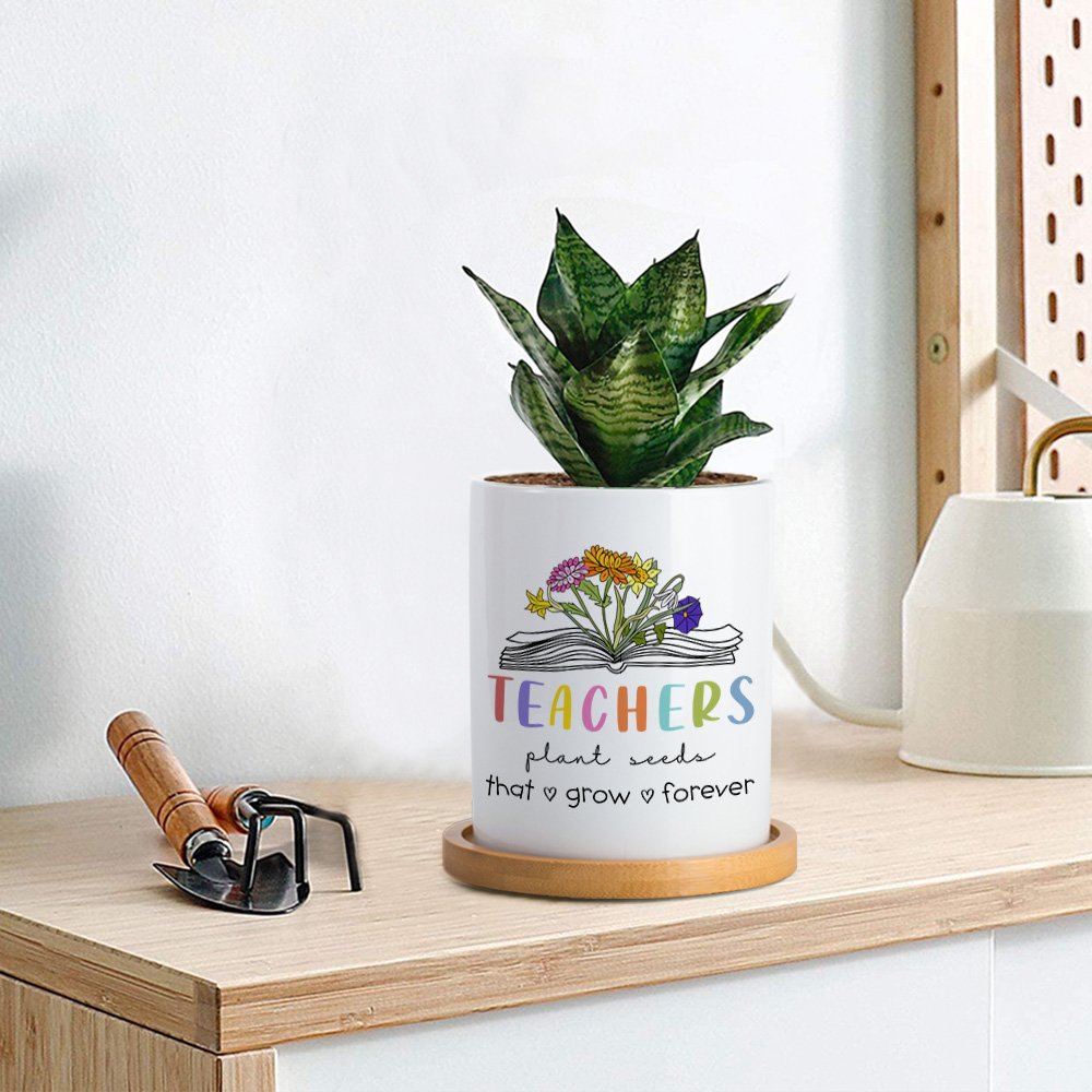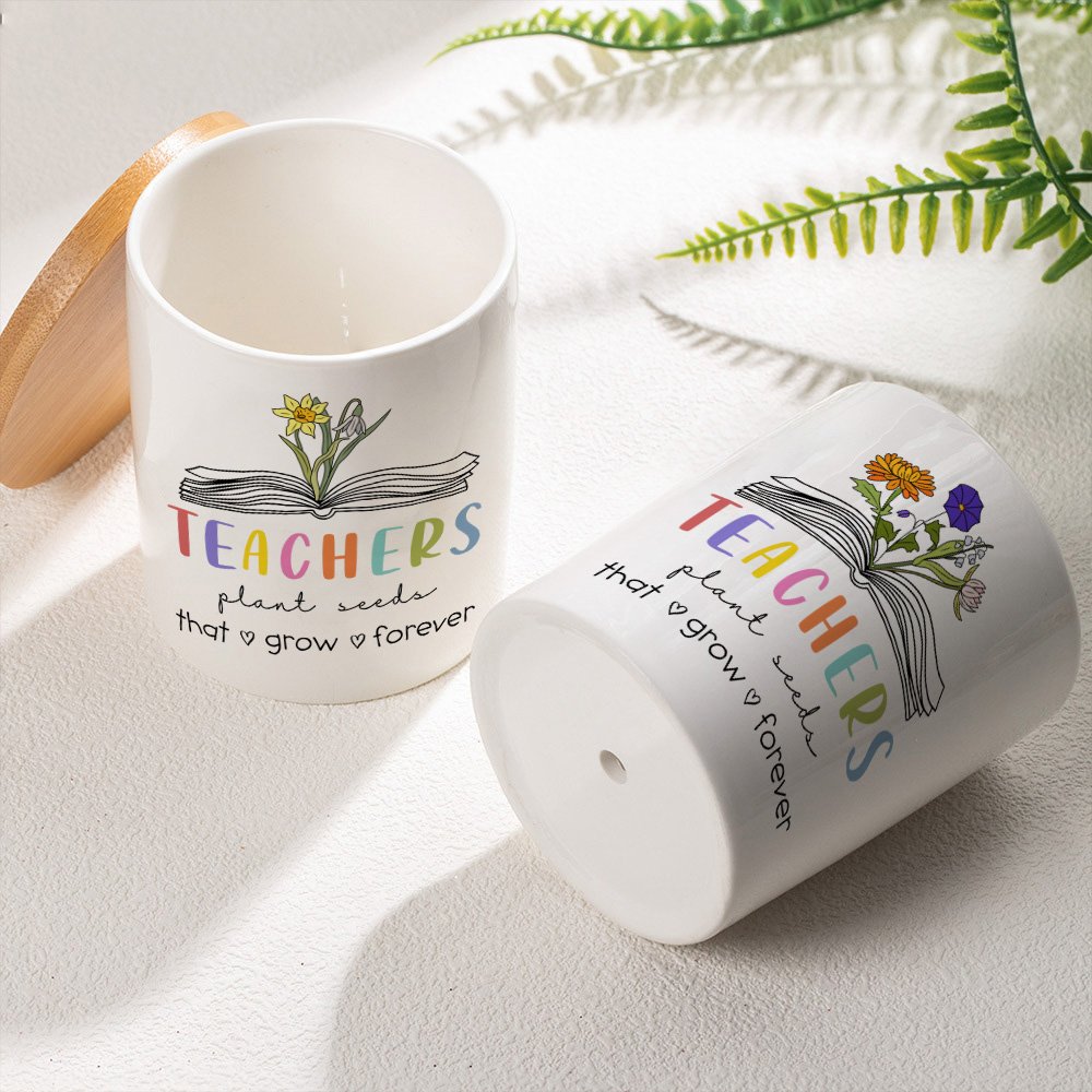This plant pot combines a book with birth flower patterns. You can customize 1-6 birth flowers to represent the birthday month. The pattern of the book implies the spread of knowledge. Students are like seeds; upon being sown by their teachers, each student will grow into a bright flower. "Teachers plant seeds that grow forever" is printed on this pot.